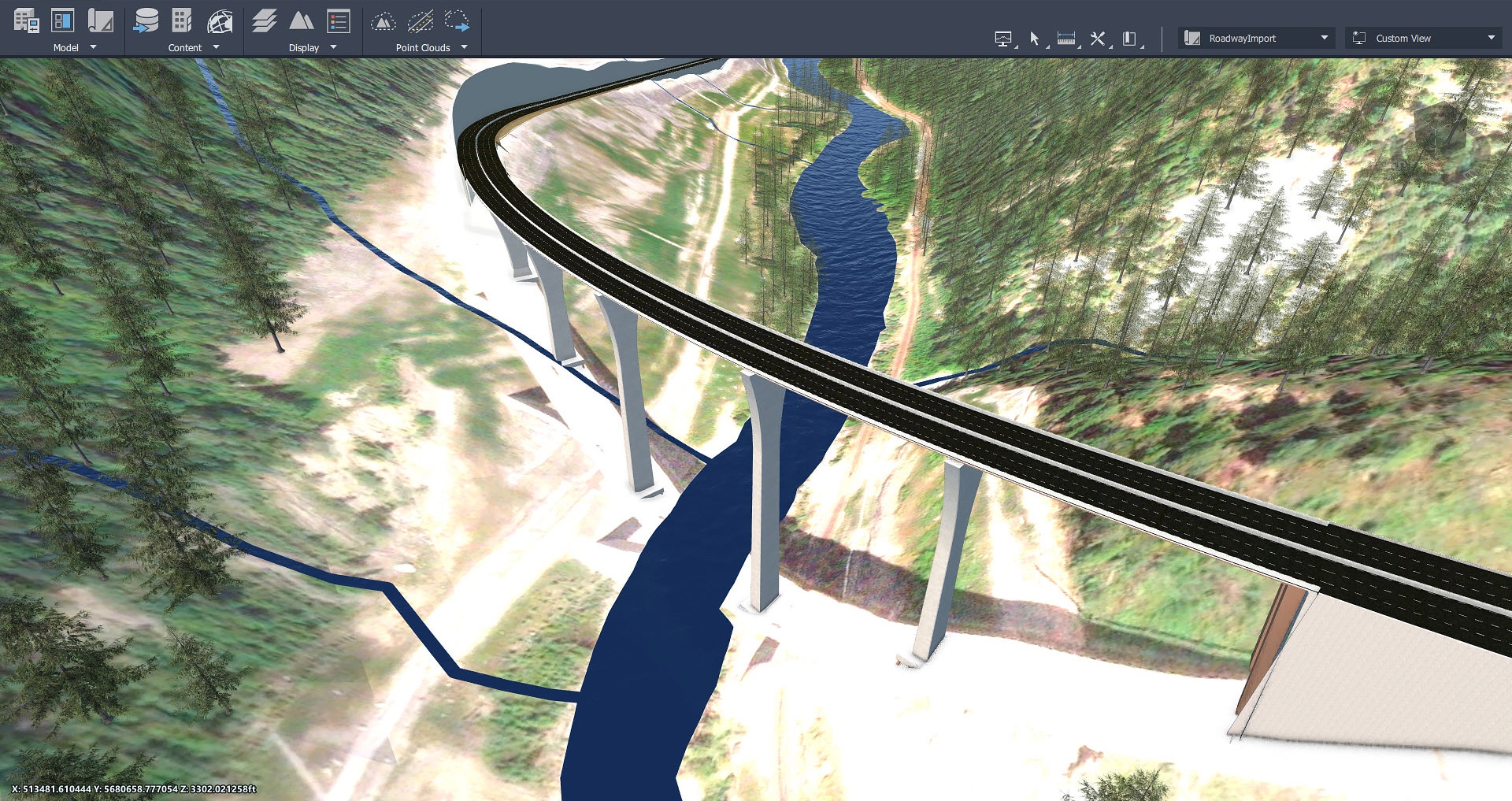 在周围场景的上下文中实现道路概念化。直观地评估各种变量,如高程、宽度和横向坡度以及放坡配置,以优化设计。