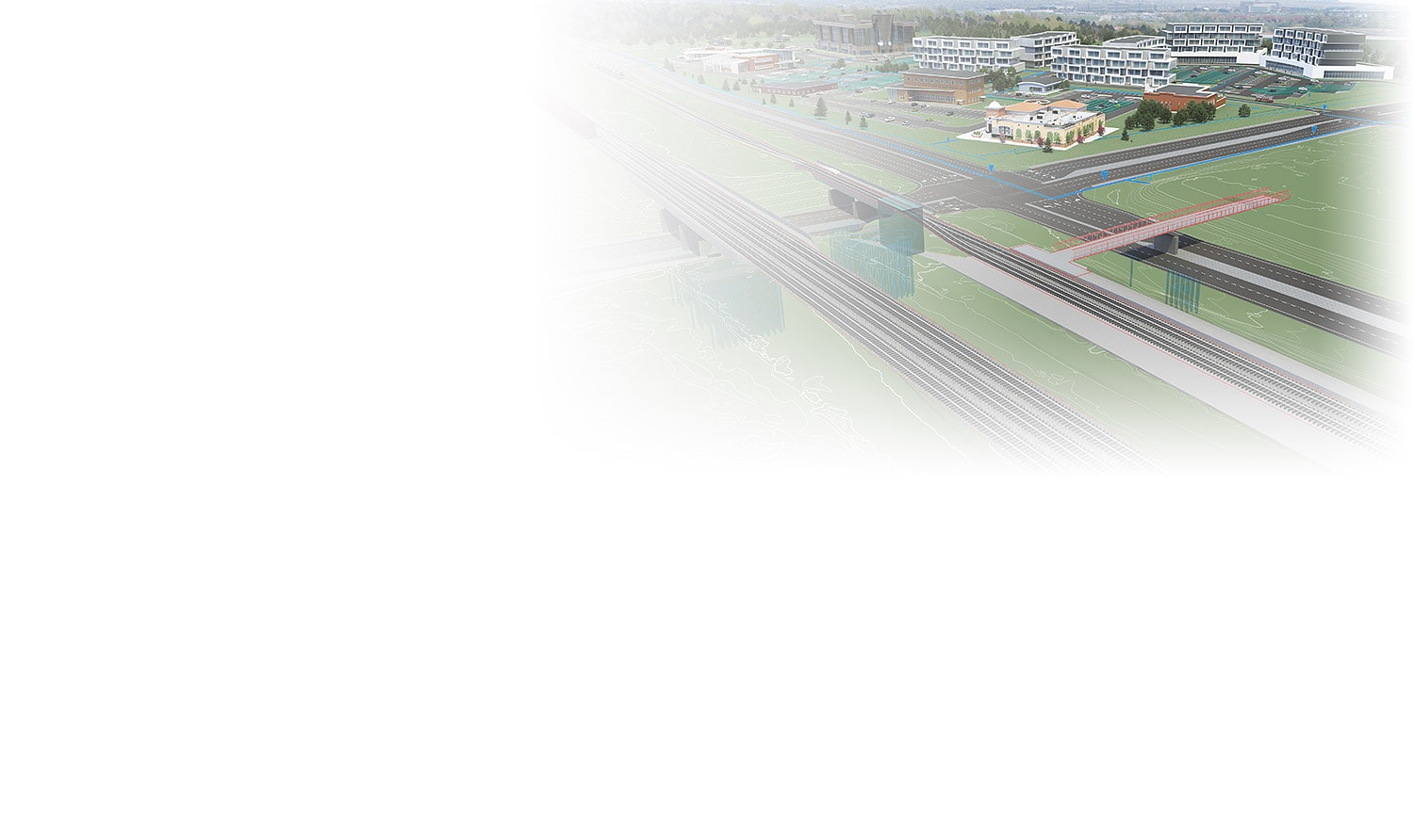 从各种来源生成基本模型,包括调查级别地形数据。布置地块、放坡、覆盖范围、城市设施等以完成设计概念。